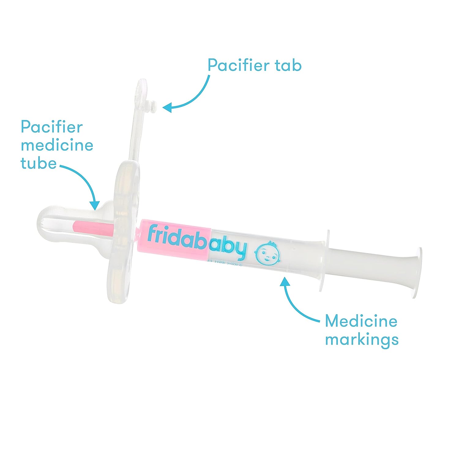 - SYRINGE: Included syringe features markings for common medicine doses, but any standard syringe can be used with paci.DOUBLE DUTY: Close tab on paci to double as a real pacifier after dosing.BPA FREE: Both pacifier and syringe are BPA free and dishwasher safe making it easy to clean and safe to use